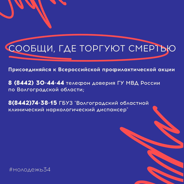 В период с 20 апреля по 01 мая 2026 г. на территории Волгоградской области проводится первый этап Общероссийской антинаркотической акции "Сообщи, где торгуют смертью".